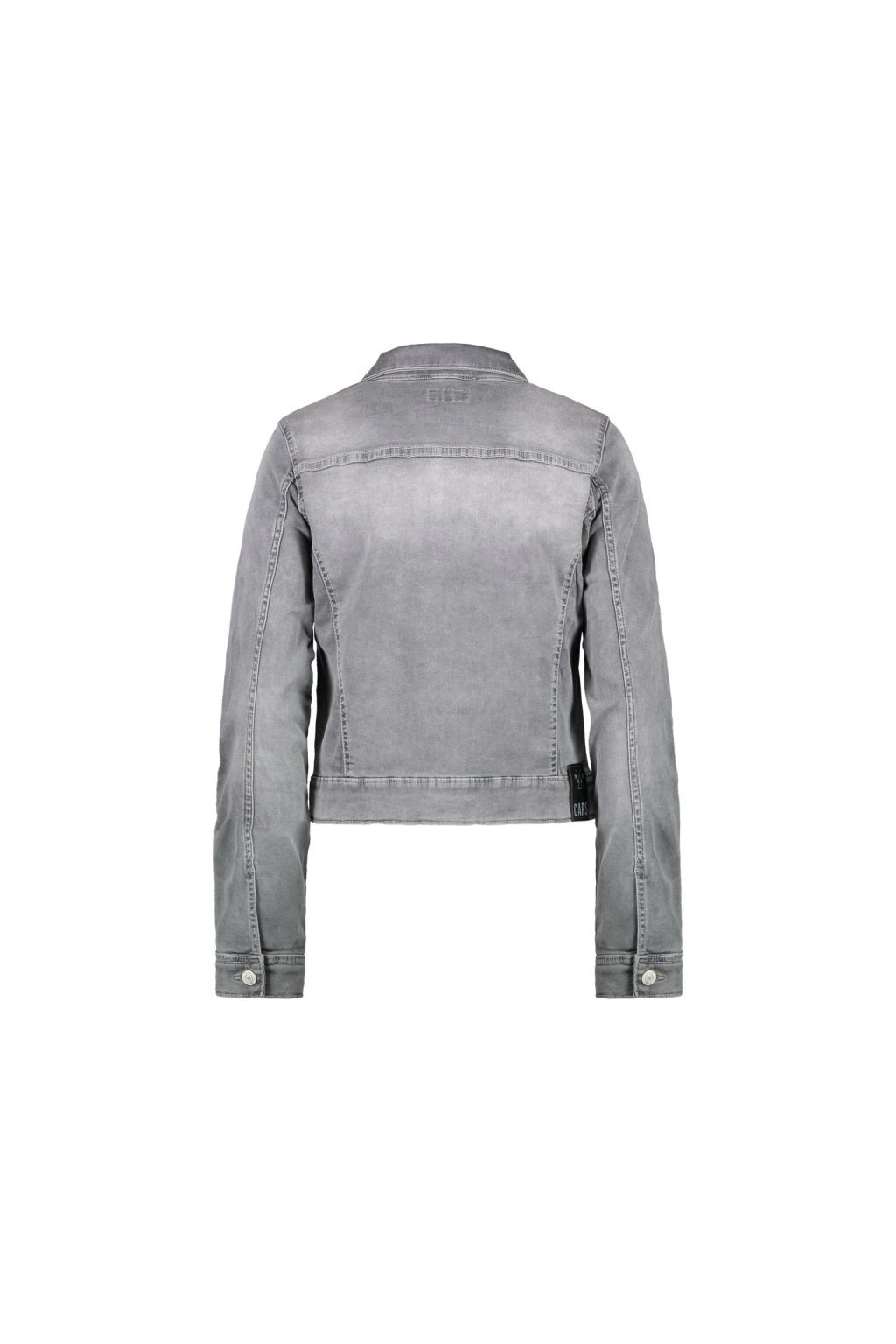 Dámská džínová bunda s prodlouženými rukávy v šedém odstínu z měkké pružné džínoviny s efektem jemného ošoupání je univerzálním kouskem, který můžete kombinovat s klasickými kalhotami, sukní i šortkami. Užijete ji od jara až do podzimu.