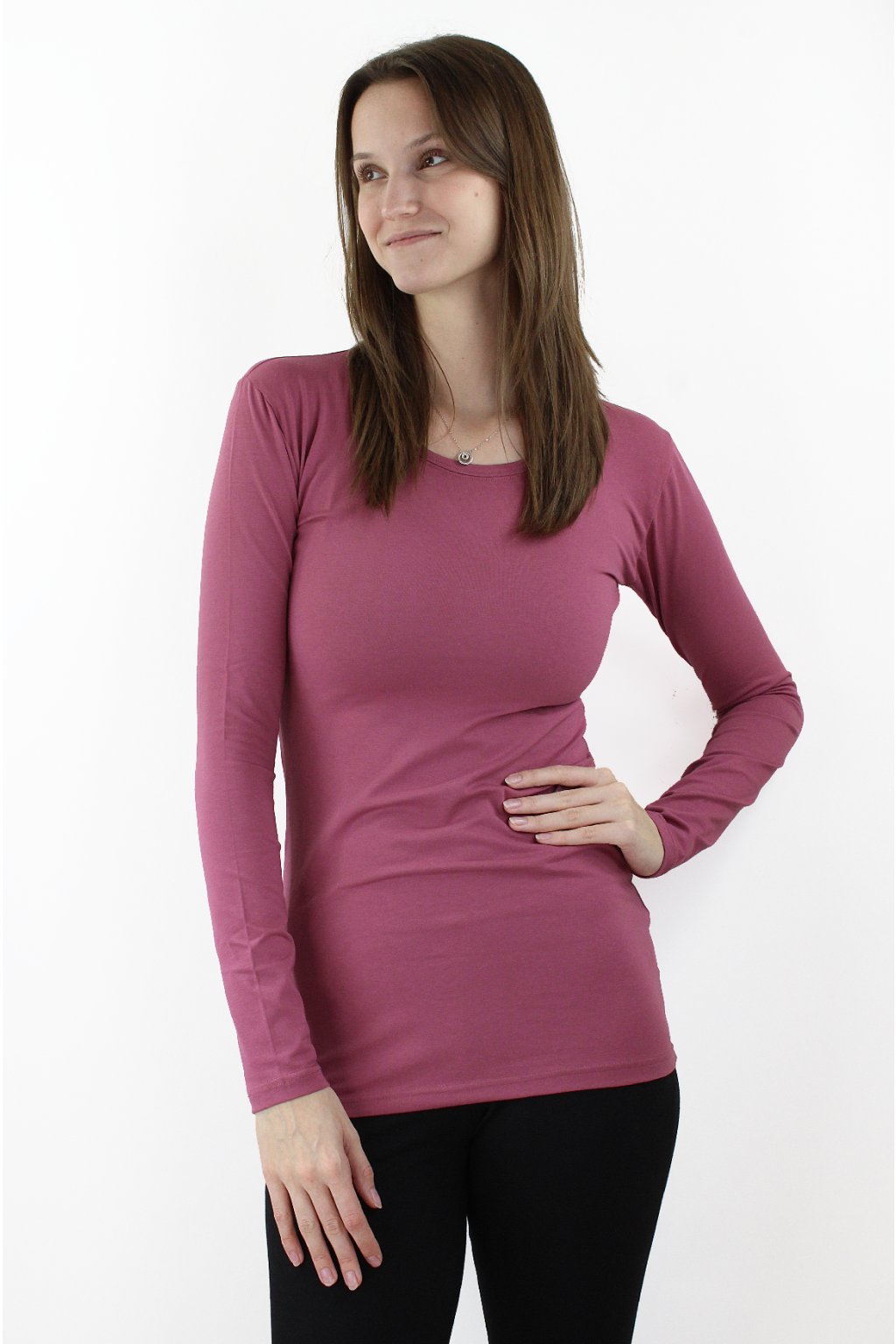 Dámské prodloužené vyštíhlené triko s kulatým výstřihem v lila odstínu je ušito z pružného, příjemného materiálu. Triko má nadčasový univerzální střih a dá se kombinovat s čímkoliv a rozhodně Vám v něm bude teplo na záda :-) Triko drží tvar a nepřetáčí se ve švech.