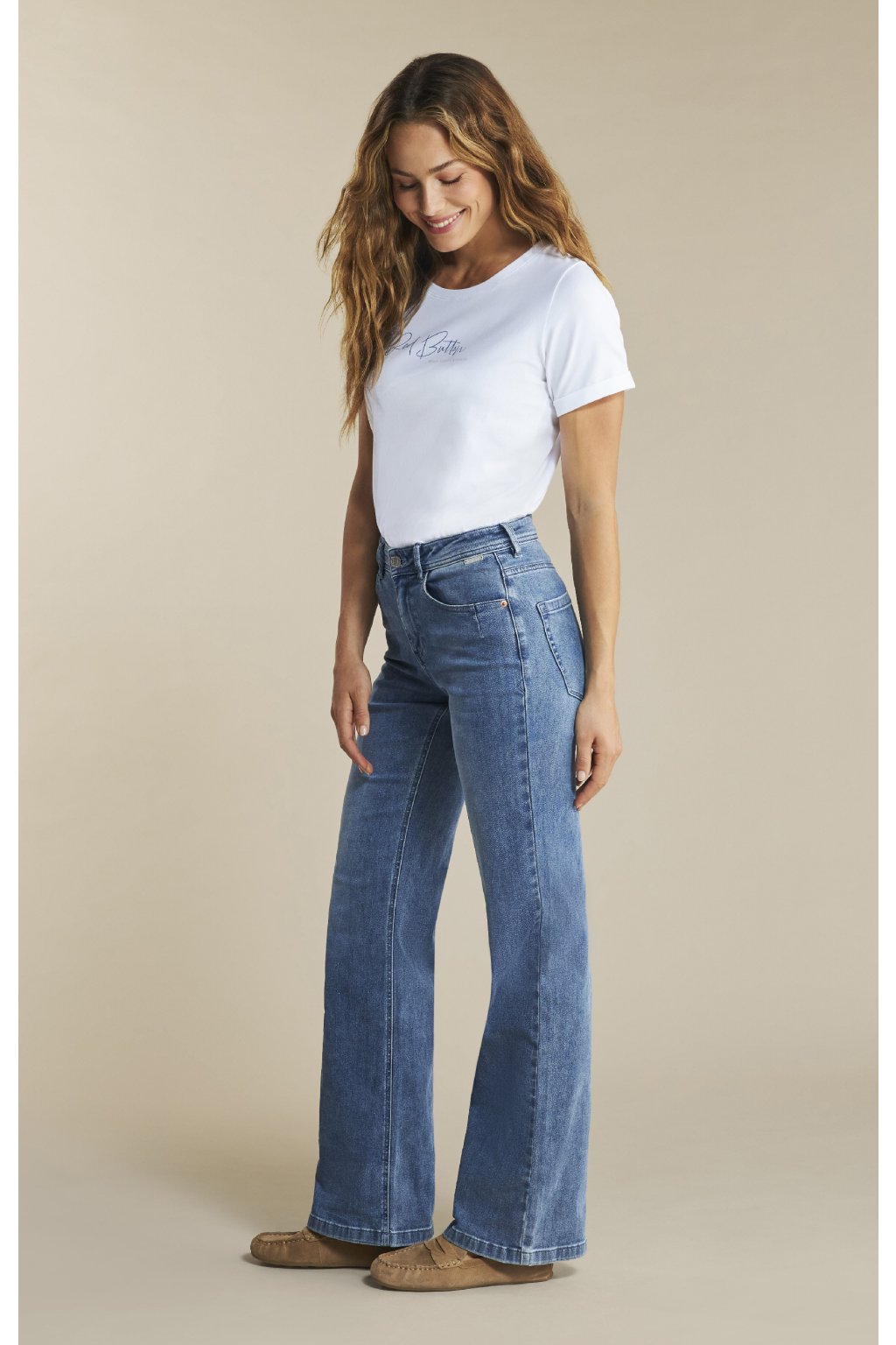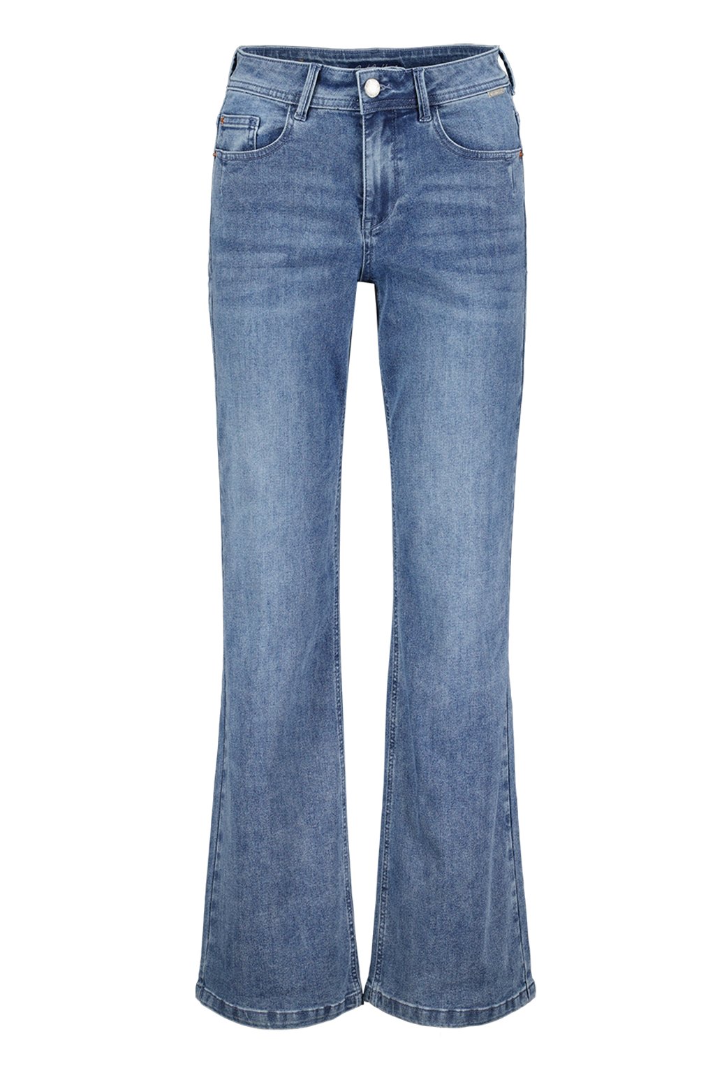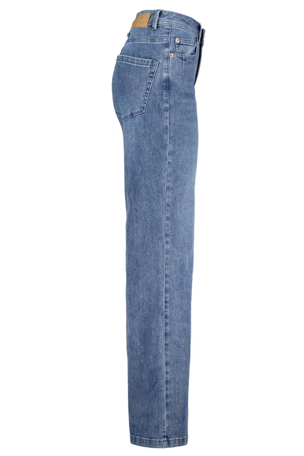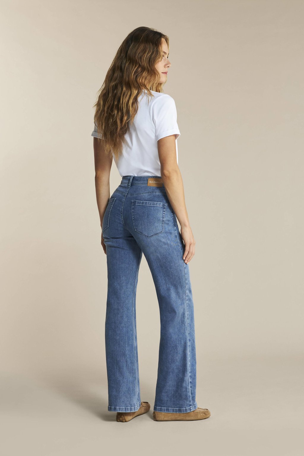 Dámské prodloužené džíny s širším střihem nohavic a vysokým pasem ušité z lehké vzdušné džínoviny jsou ideální do teplého počasí. Povrchová úprava Stonewash dodává jemný vintage nádech, zatímco 5kapsový styl je praktický i módní. Zapínání je na knoflíky a zip. Tyto džíny se hodí k různorodým botám, od tenisek až po boty na podpadku. Zkombinujte je s lehkou halenkou nebo rovným tričkem pro uvolněný vzhled, který je zároveň stylový a pohodlný. Tyto džíny Red Button jsou nepostradatelným základním kouskem, který se snadno nosí pro různé příležitosti.