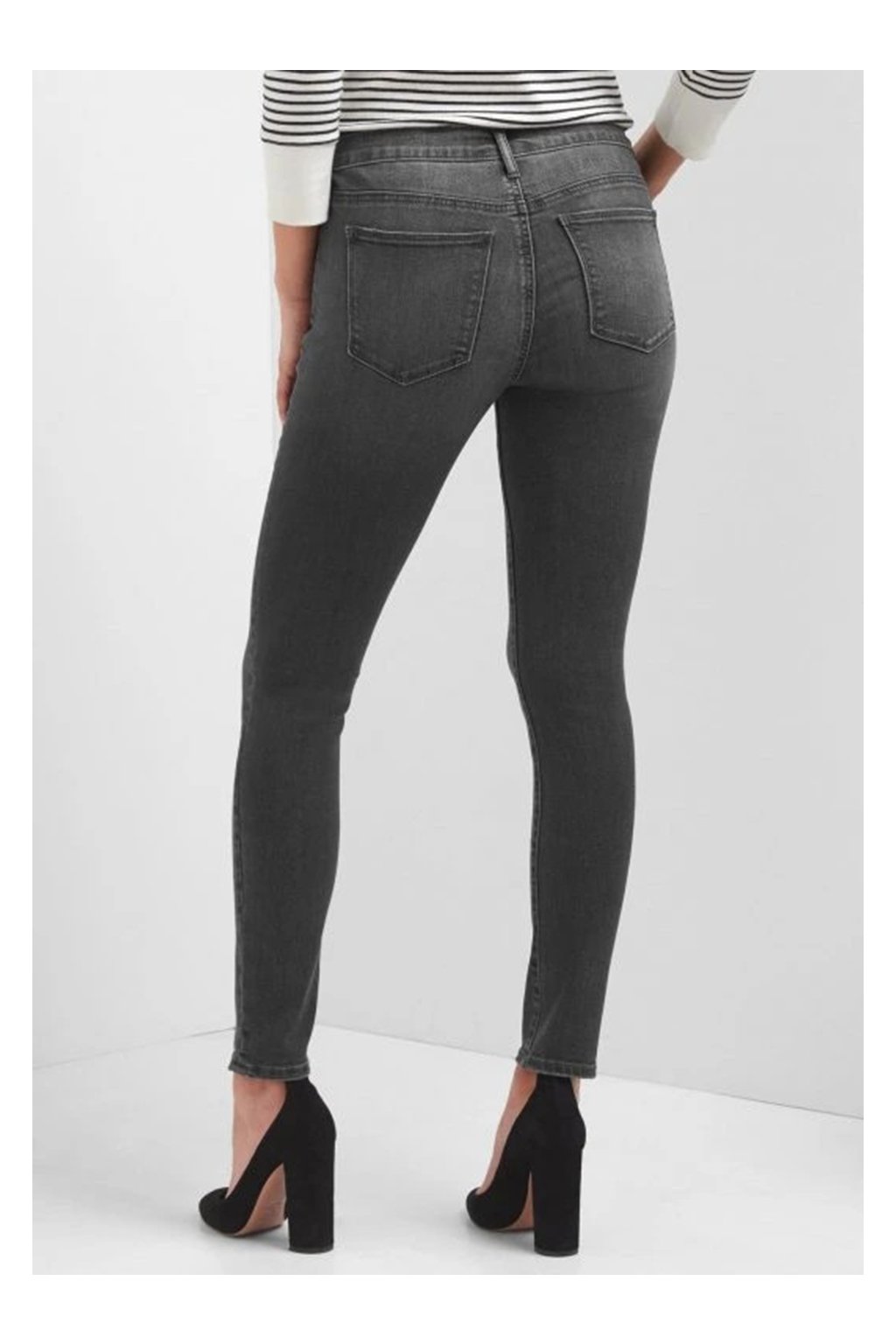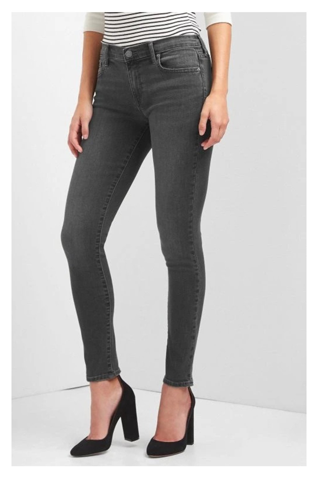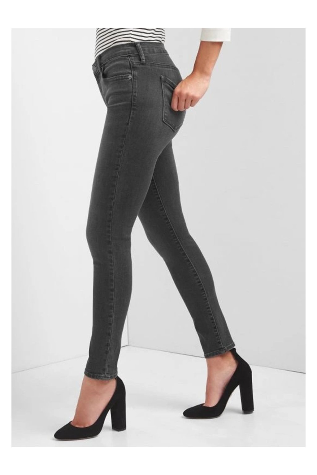 Dámské prodloužené přiléhavé džíny v zajímavé šedé barvě s mírně opraným vzhledem. Pas je snížený. Kalhoty jsou vyrobeny z pružného materiálu, a díky tomu pěkně sedí.