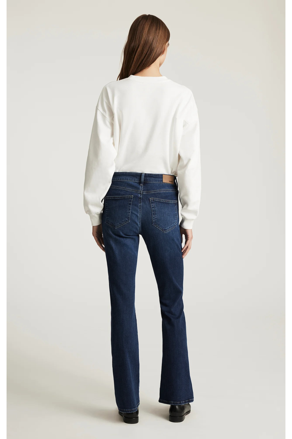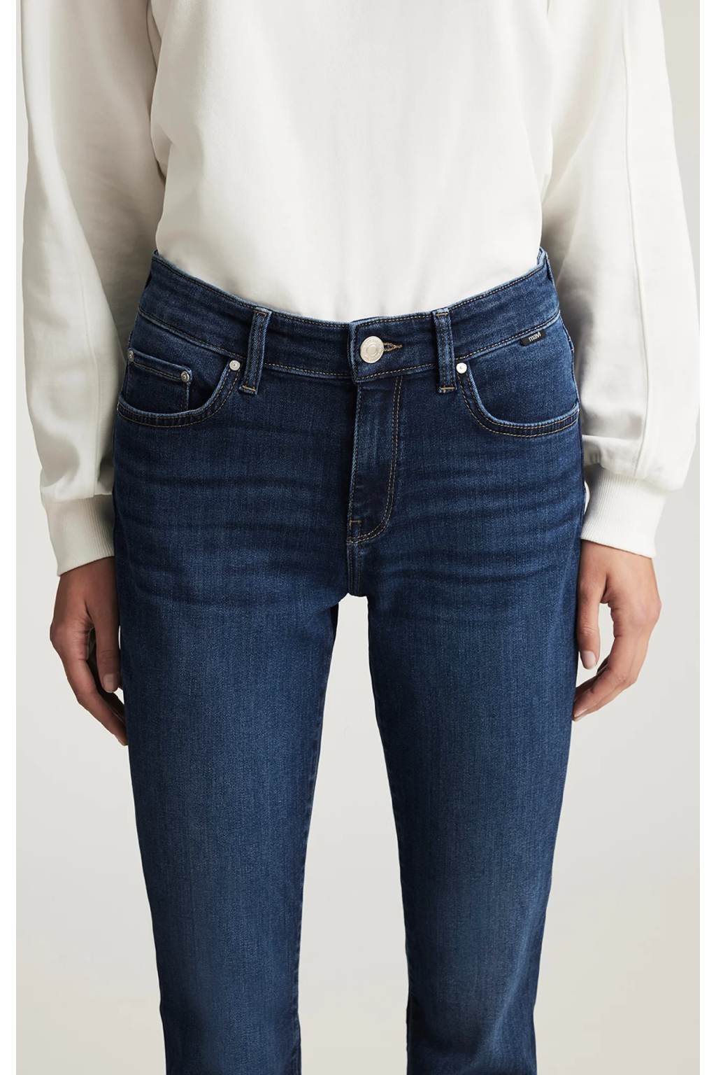 Dámské prodloužené džíny Maria Deep brushed jsou ušity z měkké pružné džínoviny v tmavě modrém odstínu s jemnou patinou. Mají středně vysoký pas a rozšiřující se nohavice typu bootcut. Na přední straně a zadní straně jsou dvě funkční kapsy. Střih velice lichotí ženské postavě a jejím výraznějším křivkám. Džíny jsou pružné a vytáhnou se, doporučujeme volit o číslo menší velikost.