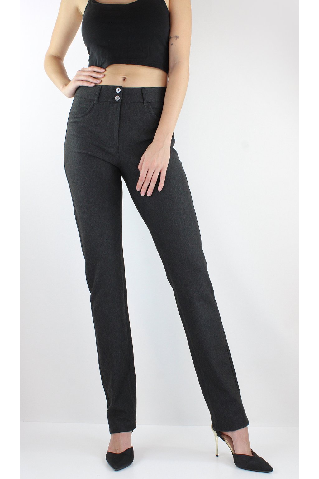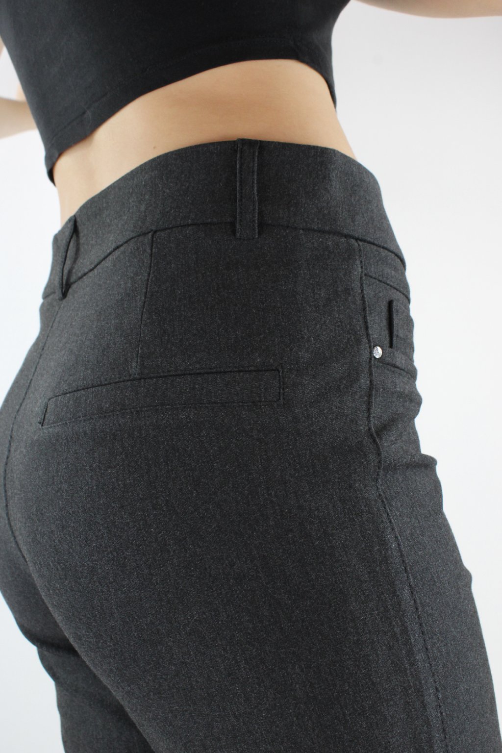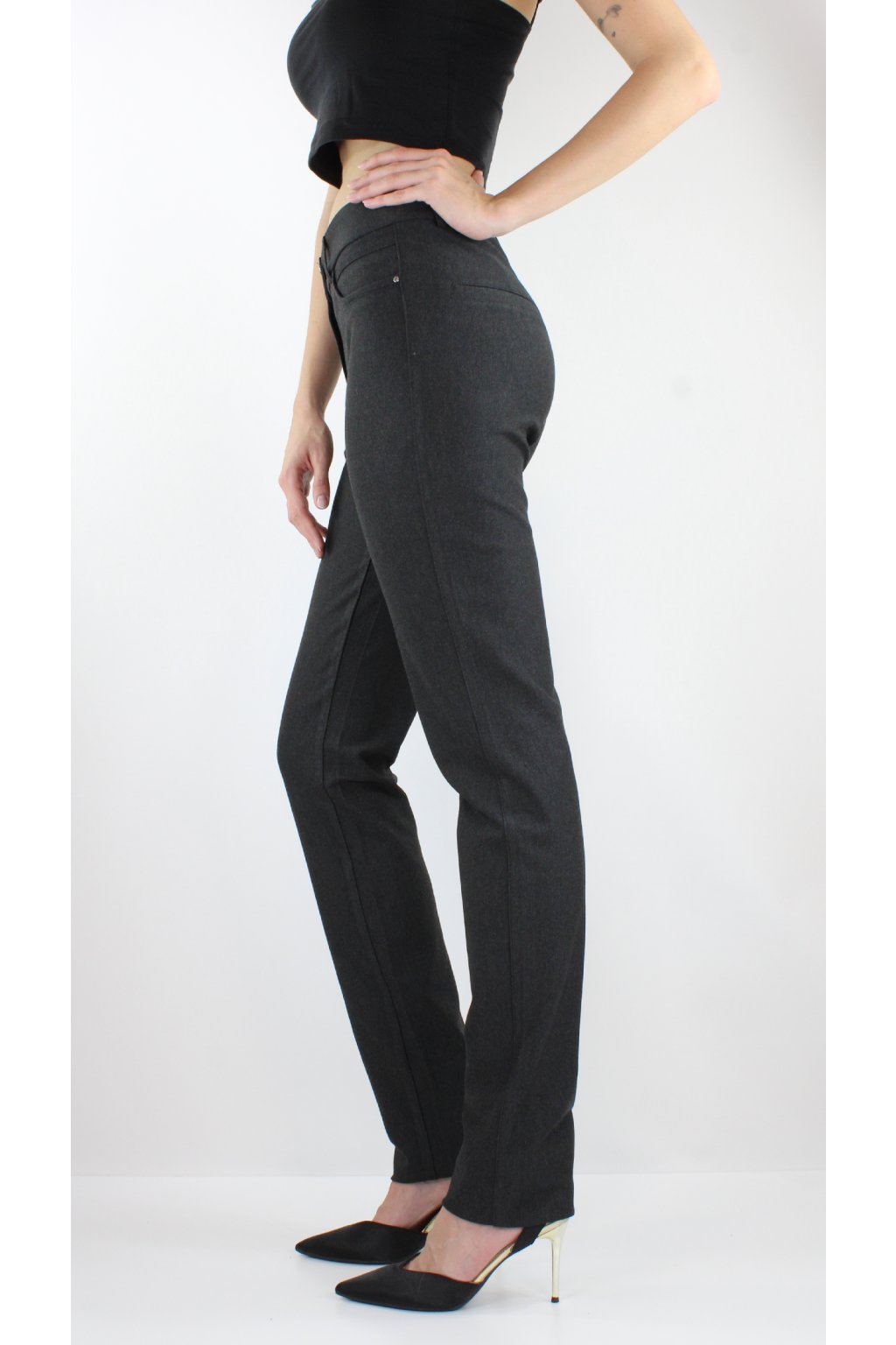 Dámské prodloužené rovné kalhoty ANT v antracitovém odstínu s jemným melírem jsou ušité z pohodlného pružného materiálu, díky němuž v nich vydržíte celý den! Kalhoty mají na zadní straně zášivky a výpustkové kapsy. Zapínání je na zip a dva knoflíky. V pase jsou poutka na uchycení opasku.