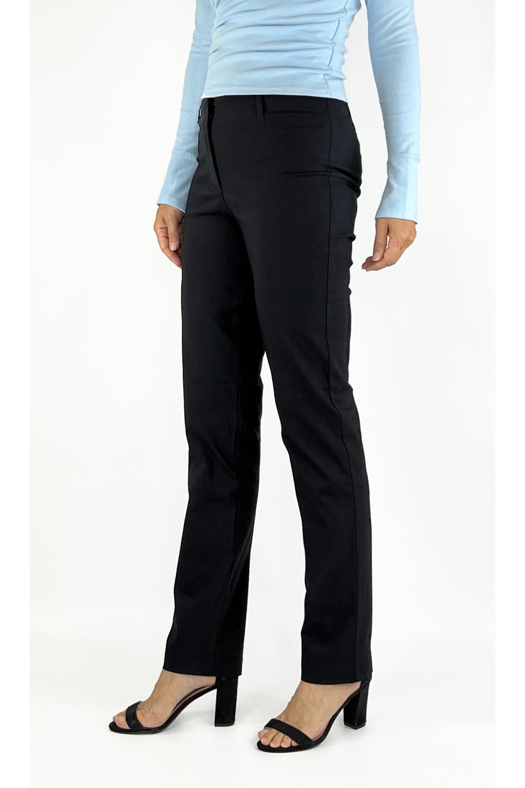 Dámské prodloužené kalhoty z pohodlného pružného materiálu v černé barvě jsou vhodné pro běžné nošení, do práce i pro formálnější příležitosti. Zapínání mají na přední straně na zip a knoflík. V pase jsou poutka na uchycení pásku. Kalhoty mají rovný střih nohavic. Jsou-li vaše míry mezi dvěma velikostmi, volte tu menší, protože materiál je velmi pružný a po krátké době nošení povolí. Tyto kalhoty mají vlastní tabulku velikostí zde níže v detailu produktu.