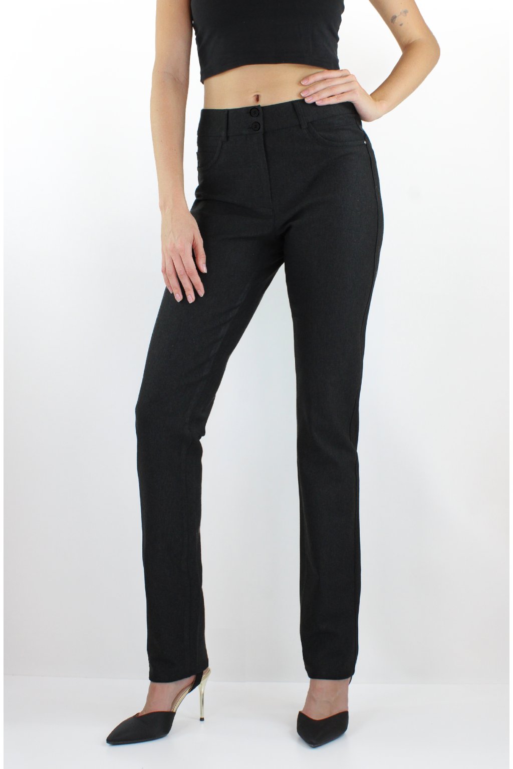 Dámské prodloužené kalhoty ZORA v černé barvě jsou ušité z pohodlného kvalitního pružného splývavého matného materiálu, díky němuž v nich pohodlně vydržíte celý den. Kalhoty mají rovné nohavice a vysoký pas. Na zadní straně mají zášivky a výpustkové kapsy. Zapínání je na zip a dva knoflíky. V pase jsou poutka na uchycení opasku. Tyto kalhoty jsou klasickým kouskem, který můžete obléct na všechny příležitosti. Jsou vhodné na každodenní nošení do práce i na slavnostní příležitosti.