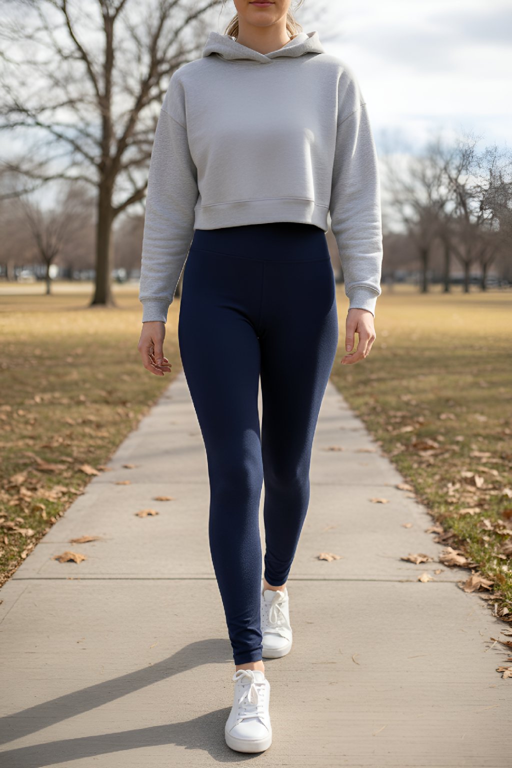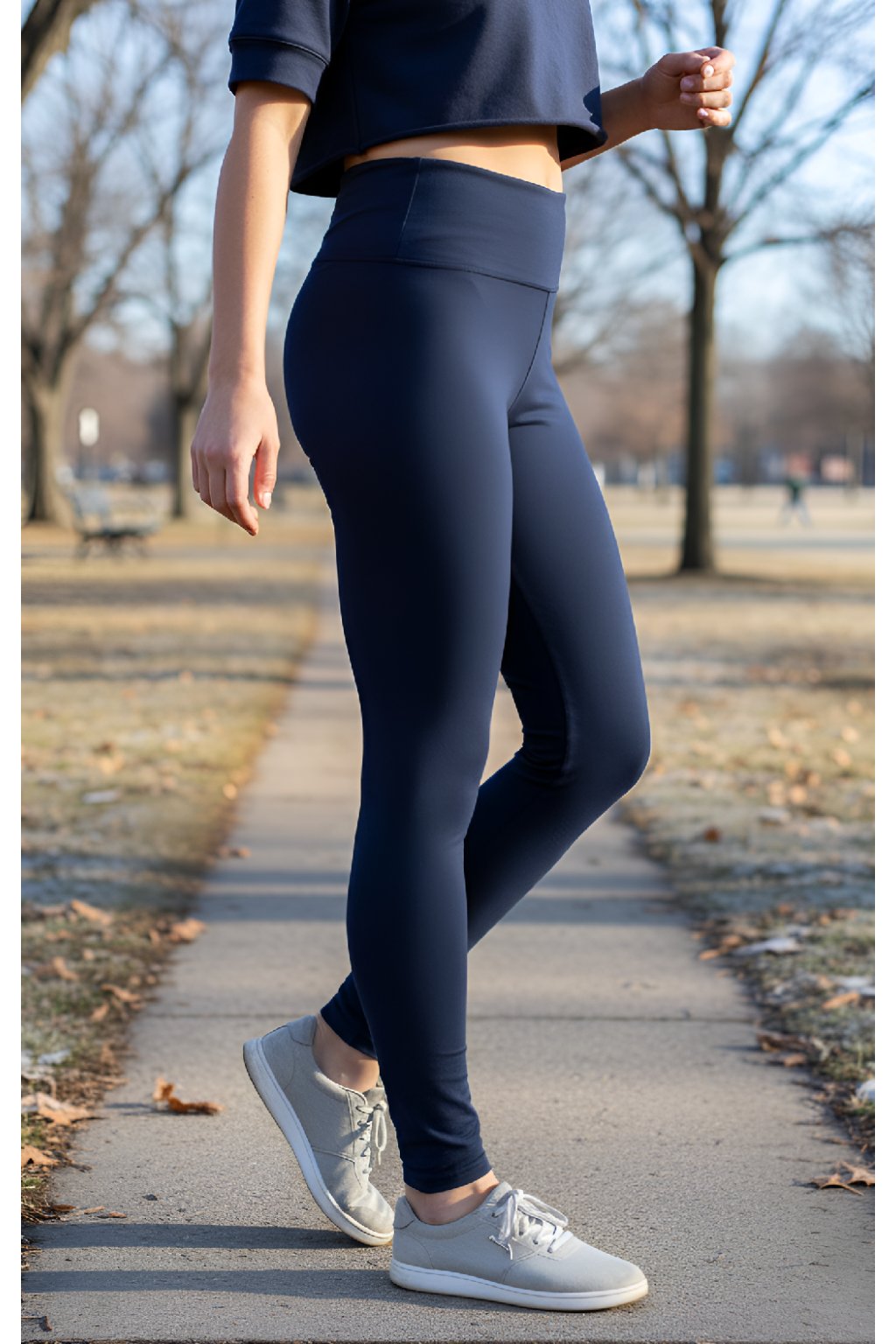 Dámské prodloužené legíny Tary z vysoko gramážní bavlny v tmavomodré barvě mají celkový stahující a tvarující efekt. Bříško stáhne vysoký přitom pohodlný pás, který můžete ohrnout.