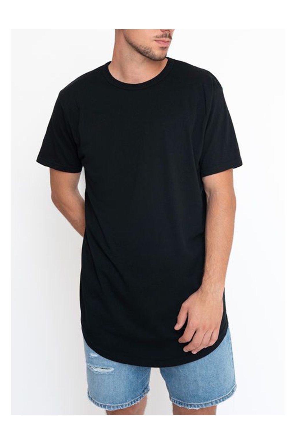 Pánské prodloužené triko černé krátký rukáv
