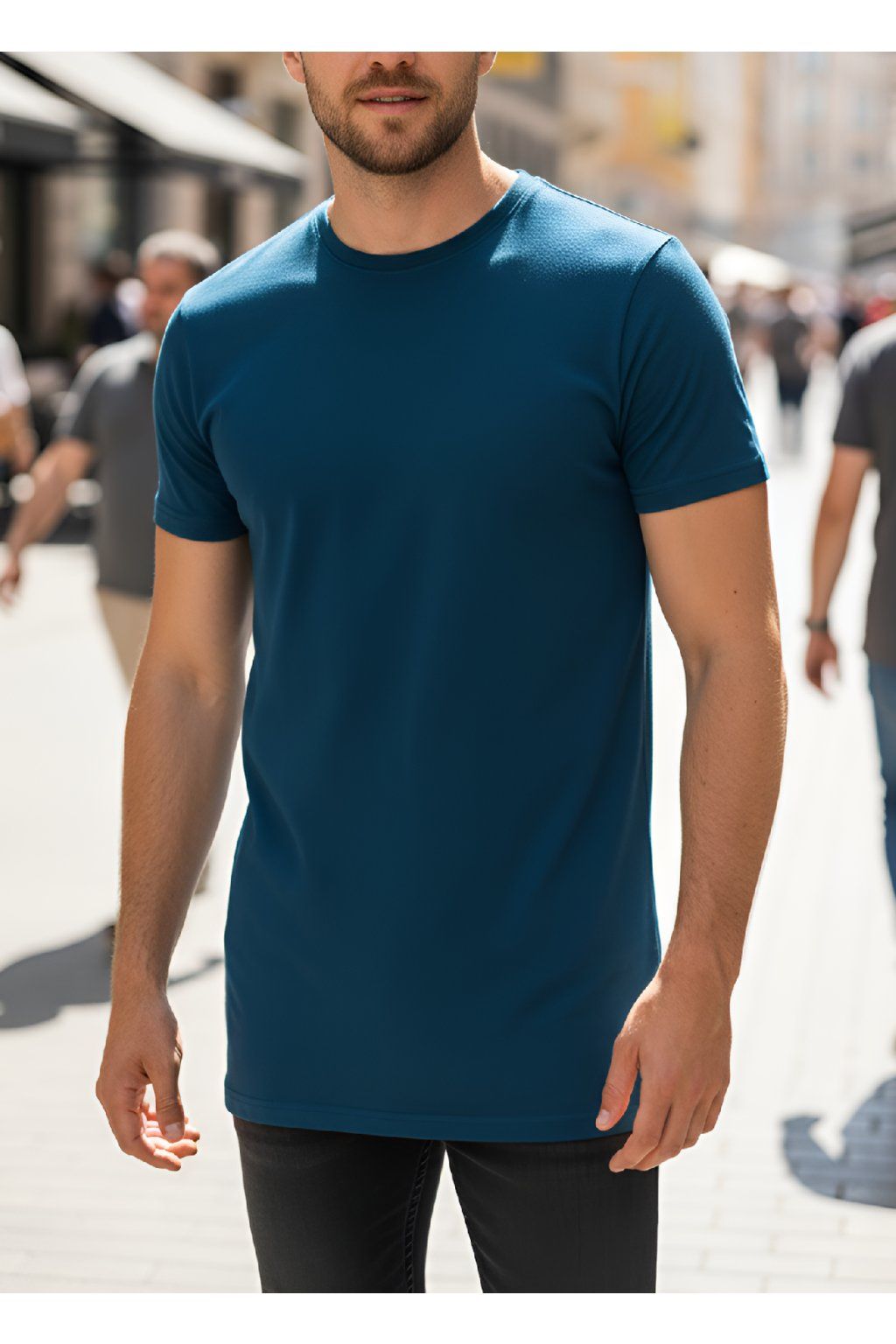 Pánské prodloužené triko DARK BLUE krátký rukáv