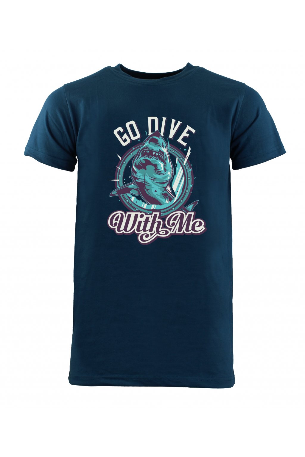 Pánské prodloužené triko v modré barvě z kvalitního bavlněného materiálu s elastanem. Triko drží tvar a nepřetáčí se ve švech. Na přední straně je DTF potisk.