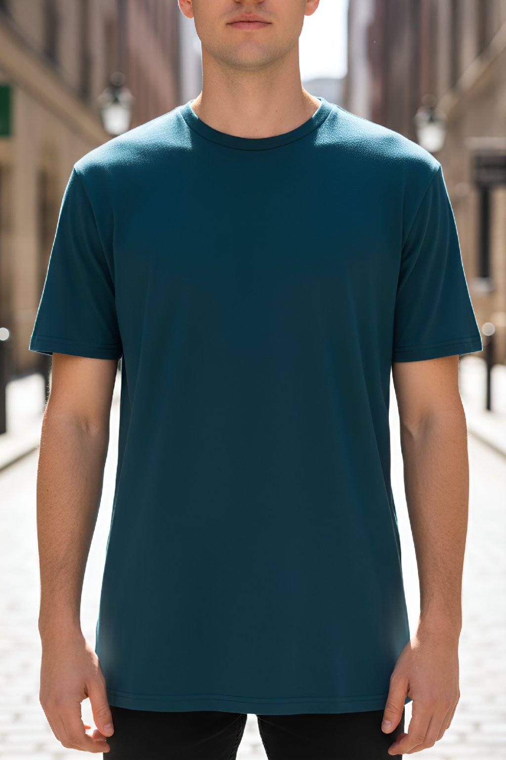 Pánské prodloužené triko v tmavě petrolejové barvě z kvalitního bavlněného materiálu s elastanem. Triko drží tvar a nepřetáčí se ve švech. Triko je bez potisku. Triko je k dispozici ve dvou délkách LONG a EXTRA LONG.
