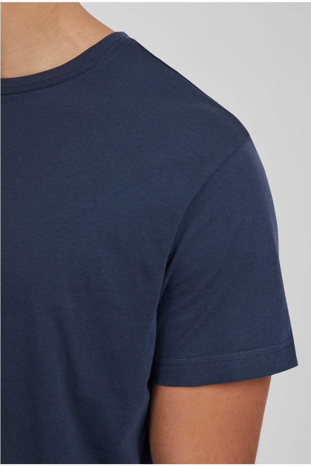 Pánské prodloužené triko jednoduchého střihu s krátkým rukávem v navy odstínu je ušité s důrazem na pohodlí a každodenní nošení. Všestranný a snadno kombinovatelný kousek – od streetwearu až po běžné nošení.