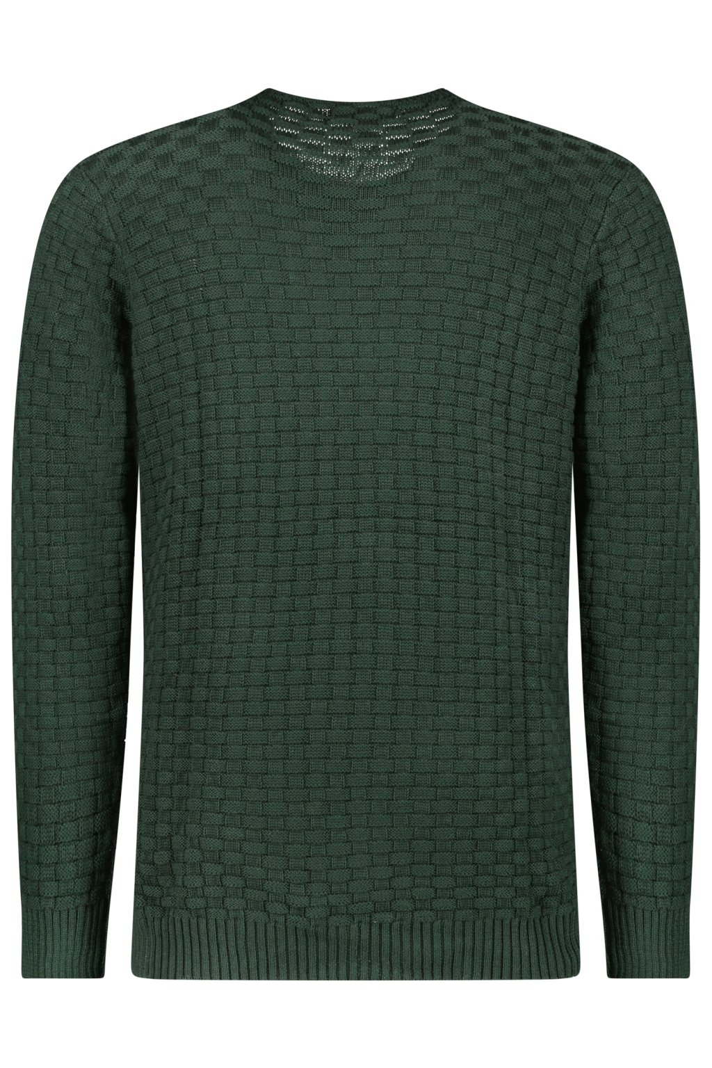 Pánský prodloužený elegantní svetr v tmavě zelené barvě se zajímavou kostičkovou strukturou je pletený z měkkého, příjemného materiálu, který nežmolkuje. Nepostradatelný kousek pro ty, kteří si rádi zachovávají jednoduchý, ale zároveň upravený vzhled.