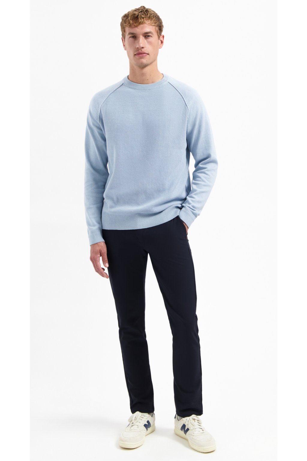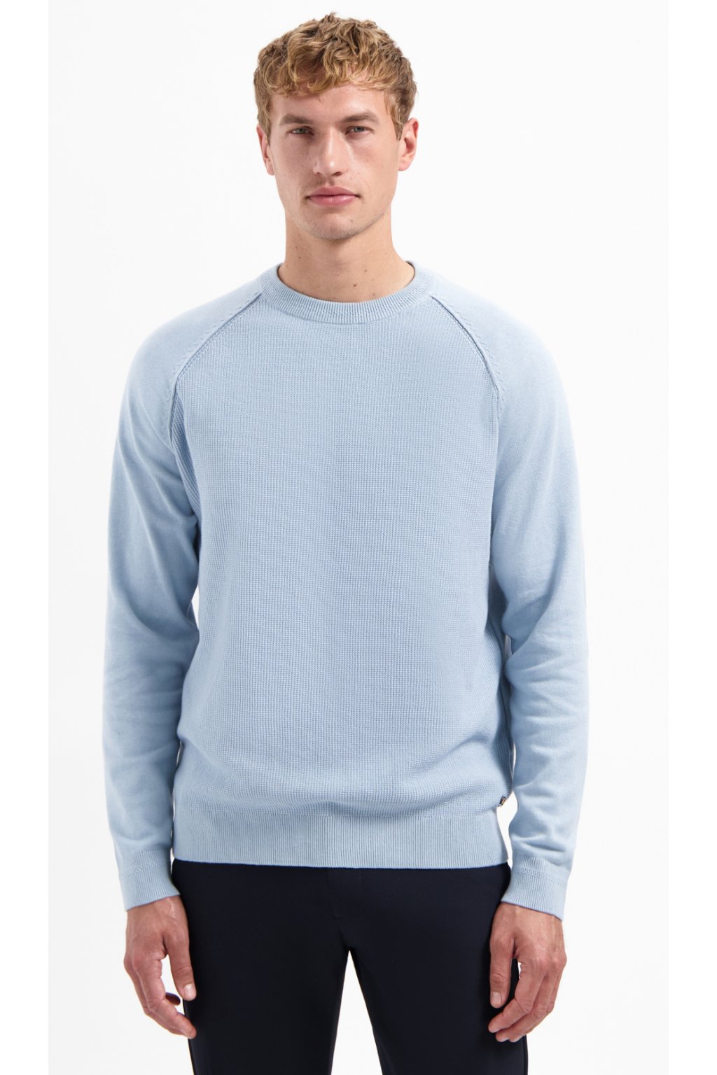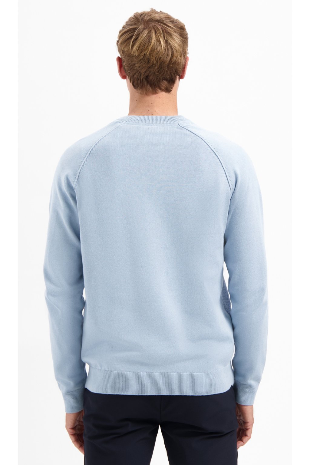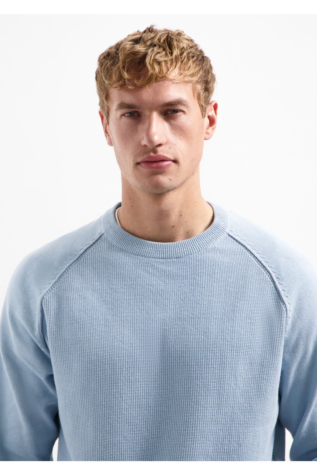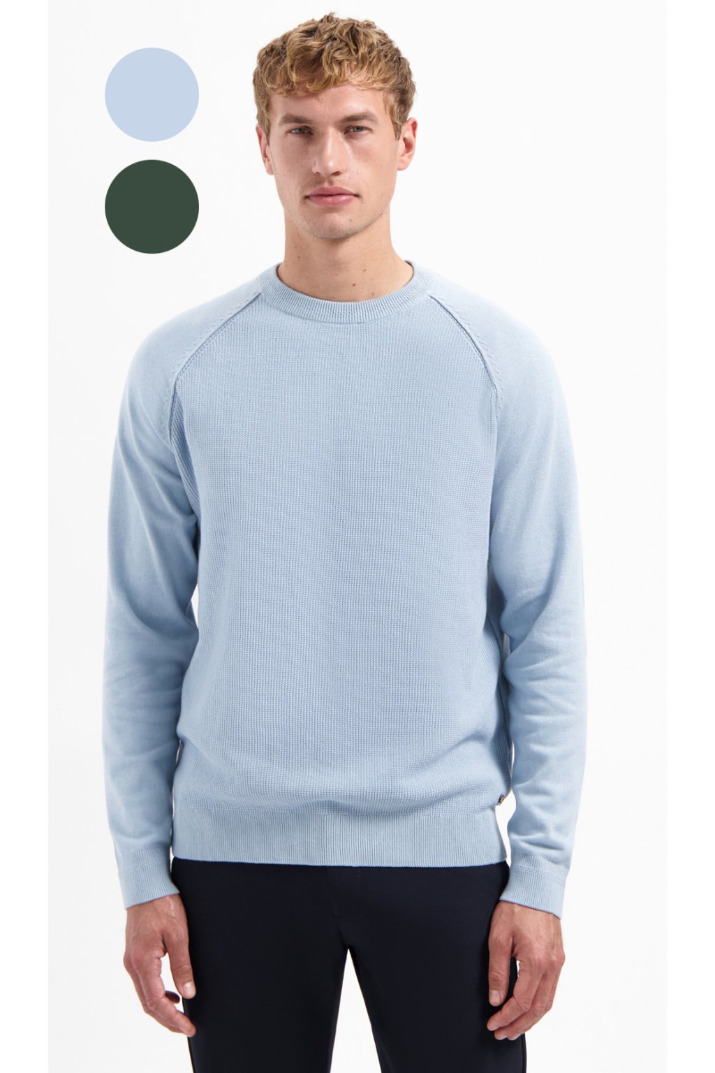 Tento pánský prodloužený svetr ve světle modré a tmavě zelené barvě se vyznačuje moderní vaflovou texturou pro decentní a strukturovaný vzhled. Raglánové rukávy a měkká bavlněná směs poskytují maximální pohodlí. Pro ležérní outfit jej kombinujte s džínami nebo chino kalhotami.
