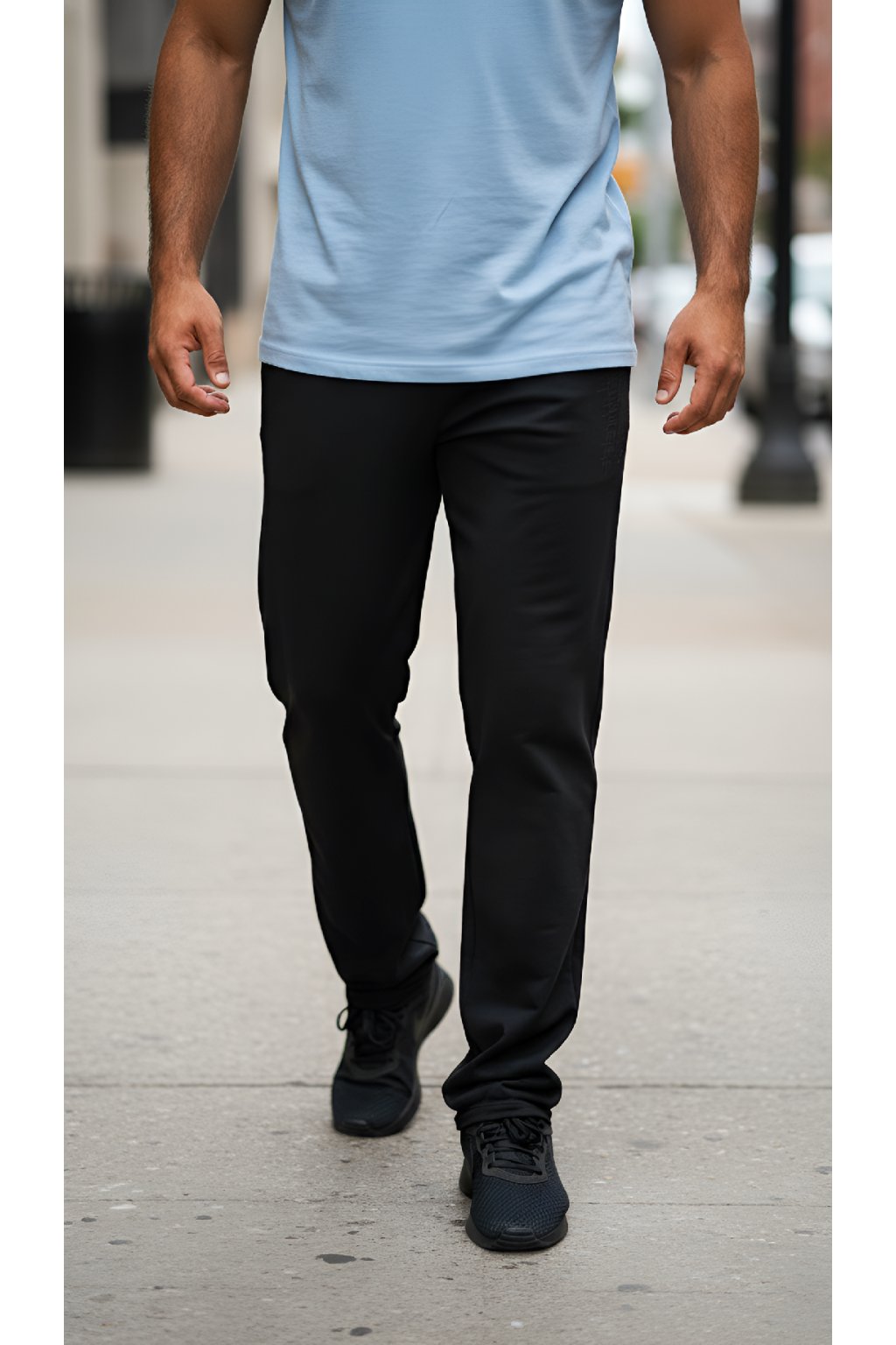 Pánské prodloužené tepláky s předními klínovými kapsami jsou ušity z lehkého pružného bavlněného materiálu. Tepláky mají úzké rovné nohavice. V pase mají gumu se stahovací šňůrkou. Každá velikost má vlastní délku vnitřní nohavice viz. tabulka níže v detailu produktu.